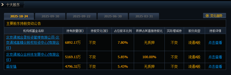 探路者原实际控制人盛发强和王静夫妇是否会继续进行减持,值得关注。2025年9月份和10月份,王静合计减持了422.46万股(占公司总股本的0.50%),减持最低价为8.596元,最高价为9.63元。王静的减持价格远远高于探路者此次定向增发预案的发行价格。在完成减持计划后,王静的持股比例降低至4.67%,不再是探路者持股5%以上的大股东。同花顺(300033)数据显示,截至2025年10月24日,盛发强持股比例为5.43%。